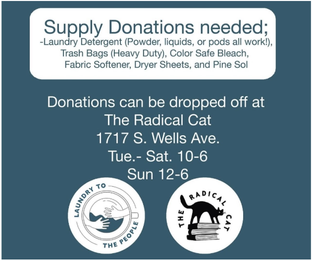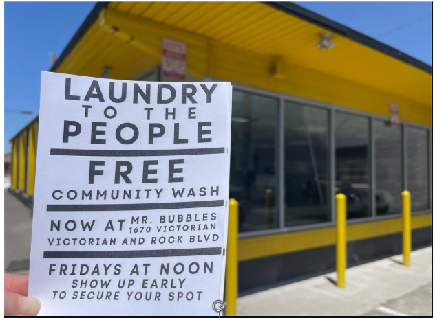 Laundry to the People is a community run resource ran by Ilya & Rosy from The Radical Cat for those who need some help with laundry! Every Friday starting at noon community members show up to our local Mr. Bubbles laundromat and help those in need buy their loads and offer soap and dryer sheets as well. Clean clothes make us feel good, allow us to have warmth when our clothes get wet, and it makes an impact when we show up to help! Hearing people’s stories is the best part.Â